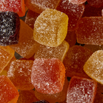 Zucchero, sciroppo di glucosio, frutta in proporzione variabile 20% (polpa di mela, pera, pesca, albicocca, fragola, mirtillo, lampone; succo di arancia, limone e mandarino), essenze di arancia, limone e mandarino, aromi naturali. Gelificante: pectina di frutta. Acidificante: acido citrico.