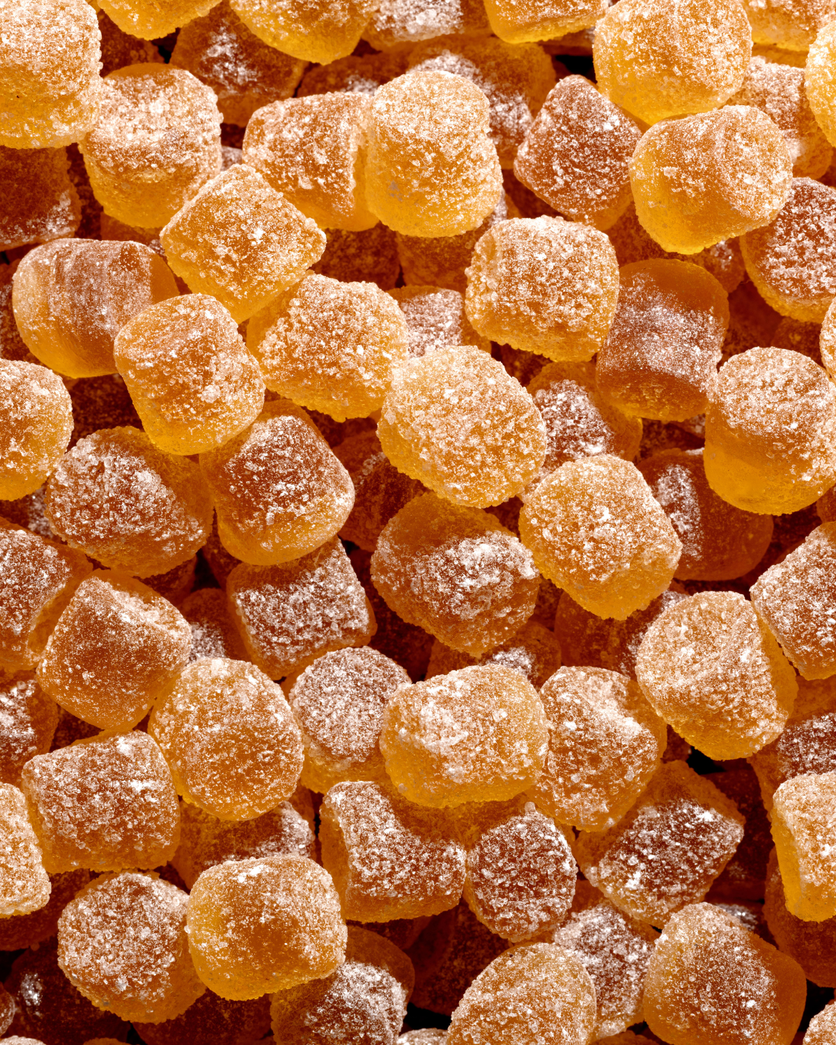 Zucker, Gummi arabicum, Glukosesirup, Zitrusessenzen, ätherisches Ingweröl, natürliche Aromen.