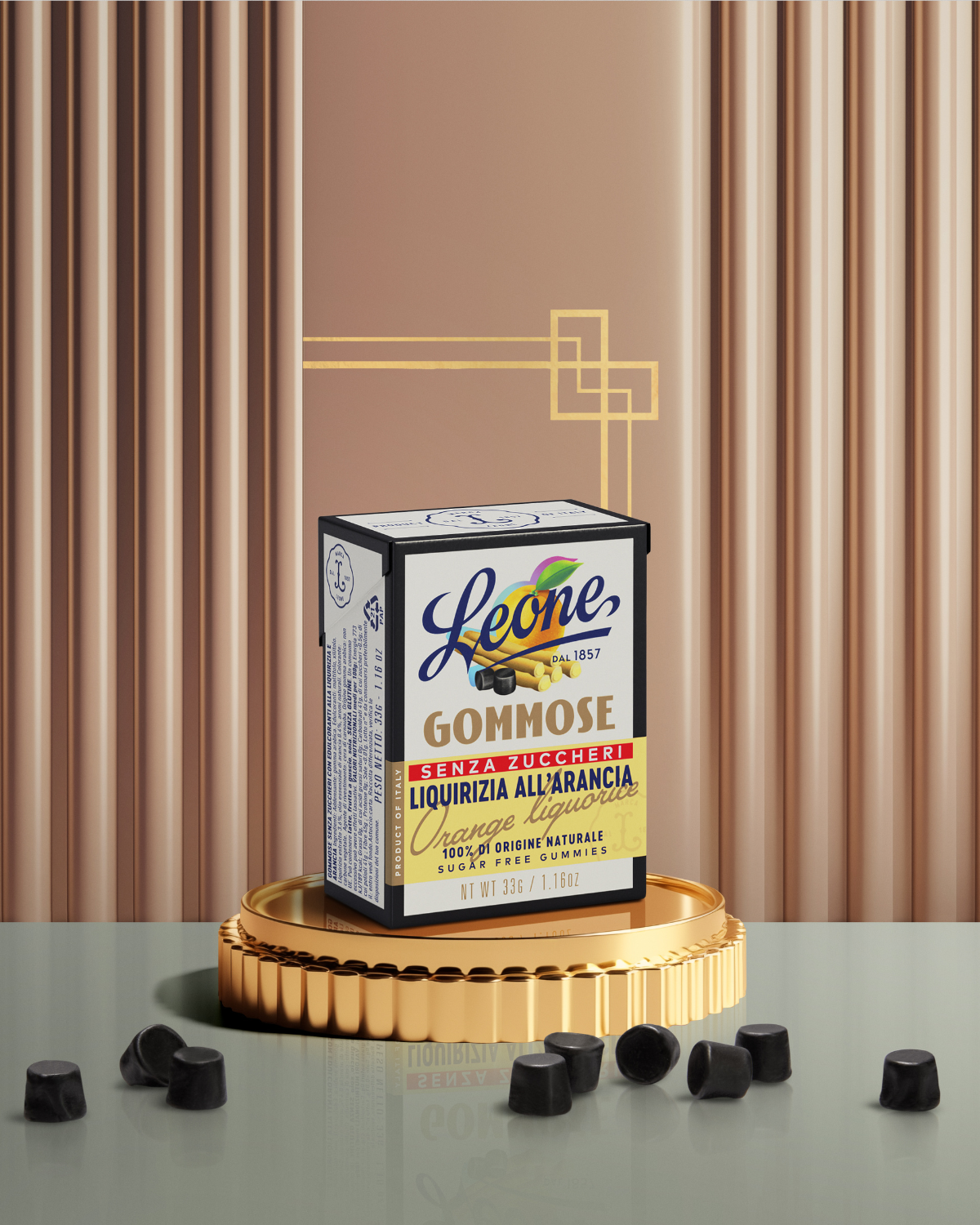 Kleine Glücksmomente mit dem köstlichen Geschmack von Orangen-Lakritz. Null Zucker, 100 % Leone.