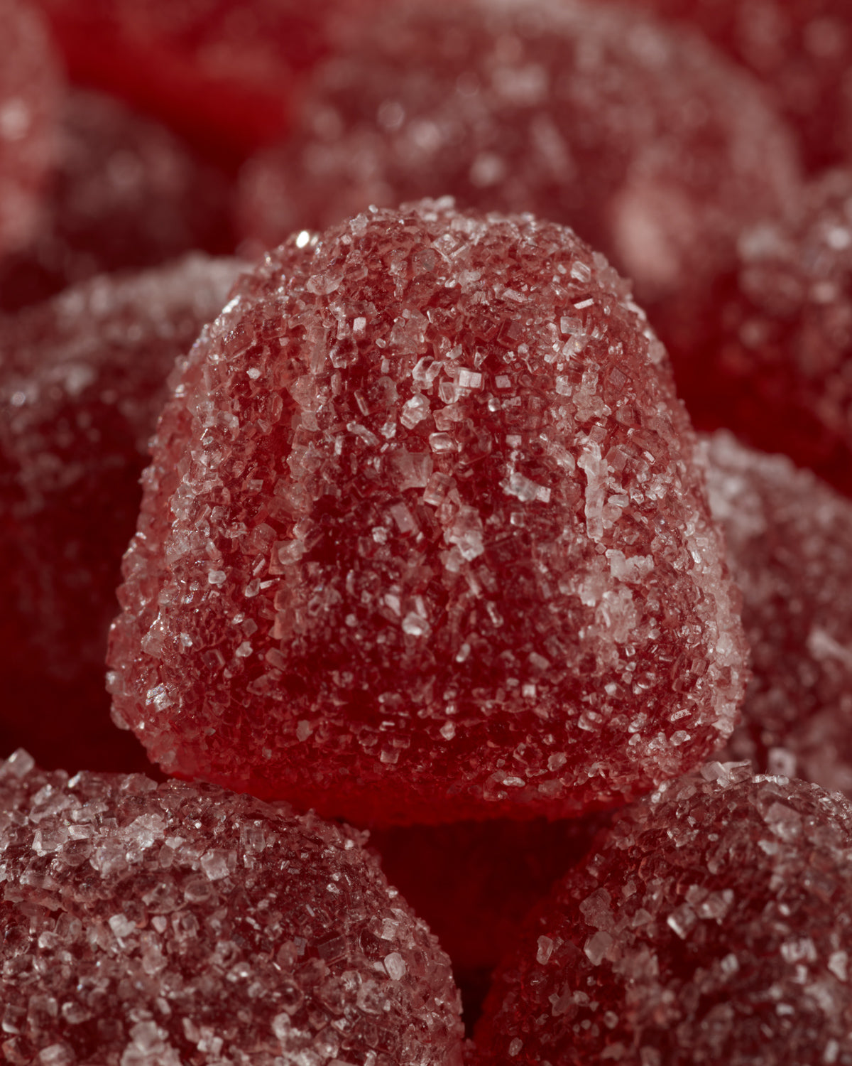 Zucker, Glukosesirup, Früchte in variablen Gewichtsanteilen 16 % (Apfel- und Schwarzkirschmark), natürliche Aromen. Geliermittel: Fruchtpektin. Säuerungsmittel: Zitronensäure.