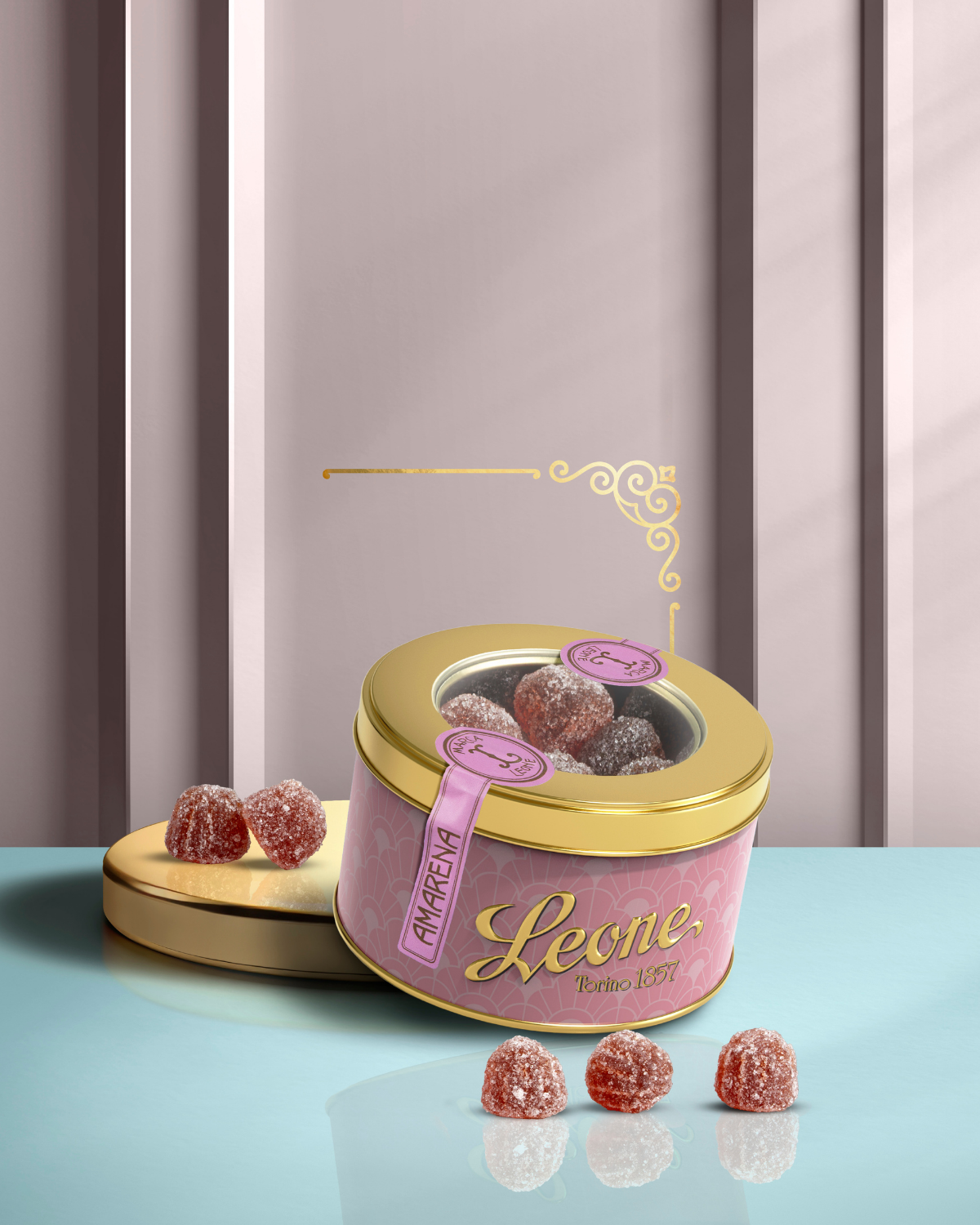 Köstliche Schwarzkirschgelees, hergestellt aus echtem Fruchtmark und aufbewahrt in einer ikonischen Sammlerdose.
