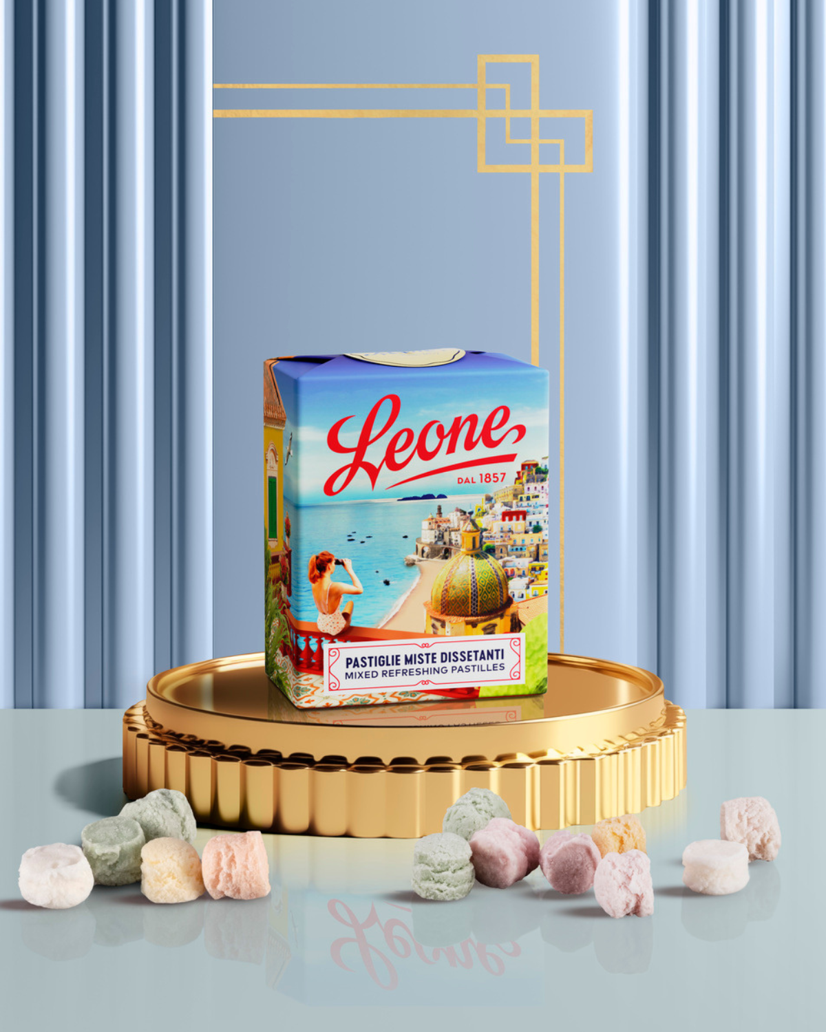 Die unverwechselbare Frische der gemischten Pastillen von Leone in einem neuen Grafikdesign, das eine Hommage an die italienische Identität darstellt. Eine Reise durch die berühmtesten Landschaften des Bel Paese, um das italienische Dolce Vita zu erleben.