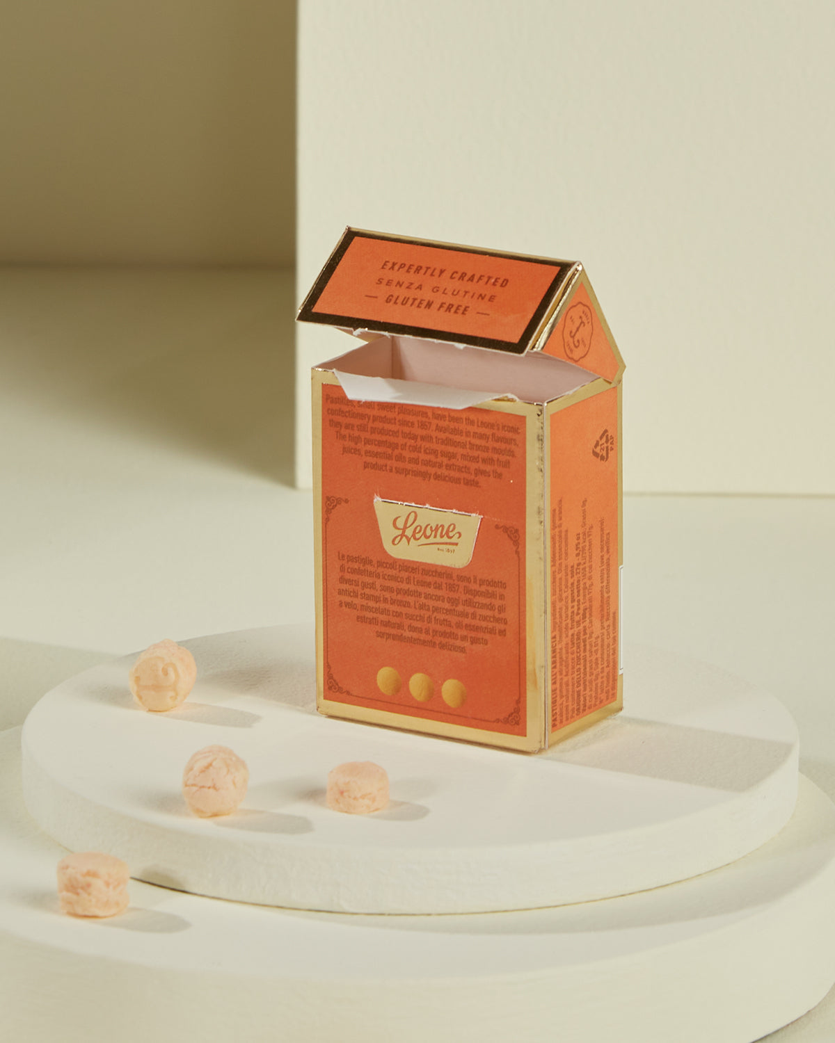 Eine kleine Schachtel, die Sie immer bei sich tragen können, voller kleiner süßer Schätze mit Orangengeschmack. Sie schmelzen sanft im Mund und entfalten einen einzigartigen, authentischen Geschmack, dank hochwertiger Zutaten und italienischer Handwerkstradition.