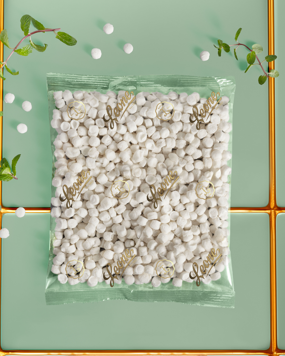 Eine Tüte voller kleiner süßer Schätze mit Minzgeschmack.