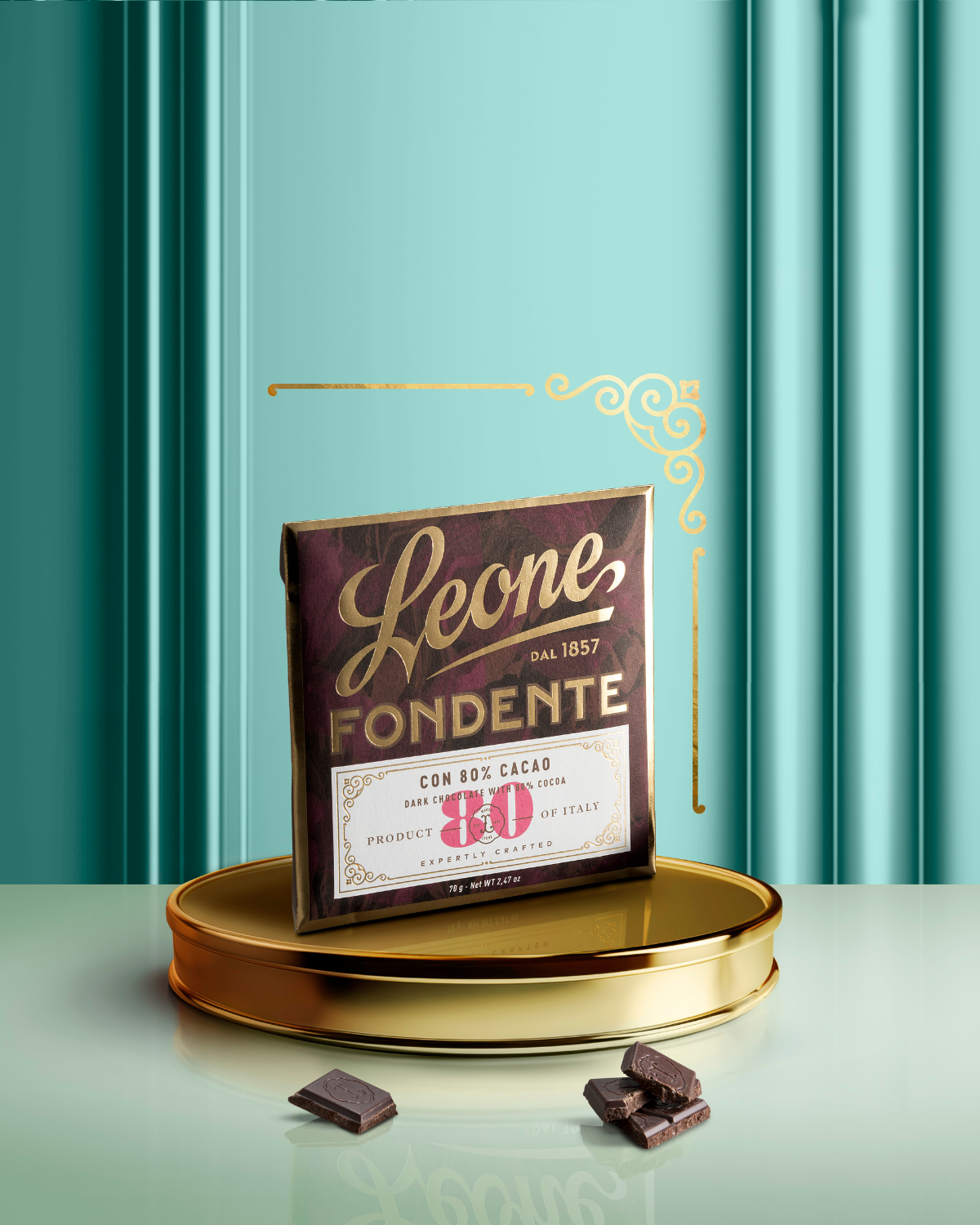 Perfektionierte dunkle Schokolade mit 80 % Kakao. Eine Tablette mit einer ausgewogenen aromatischen Struktur, die Sie auf eine köstliche Reise voller intensiver Empfindungen entführt.