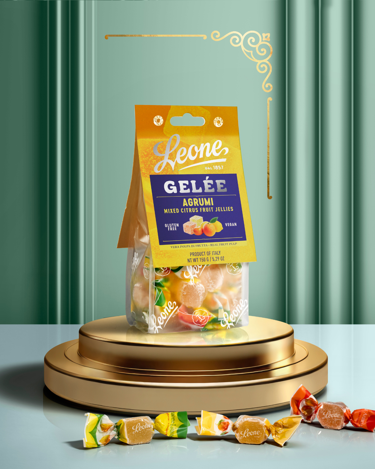Ein Konzentrat aus gewürfelten Früchten. Weiche Gelees mit Orangen-, Zitronen- und Mandarinengeschmack, hergestellt nur aus natürlichen Zutaten und ohne Zusatz von Farbstoffen, jetzt in einer neuen und praktischen wiederverschließbaren Verpackung.