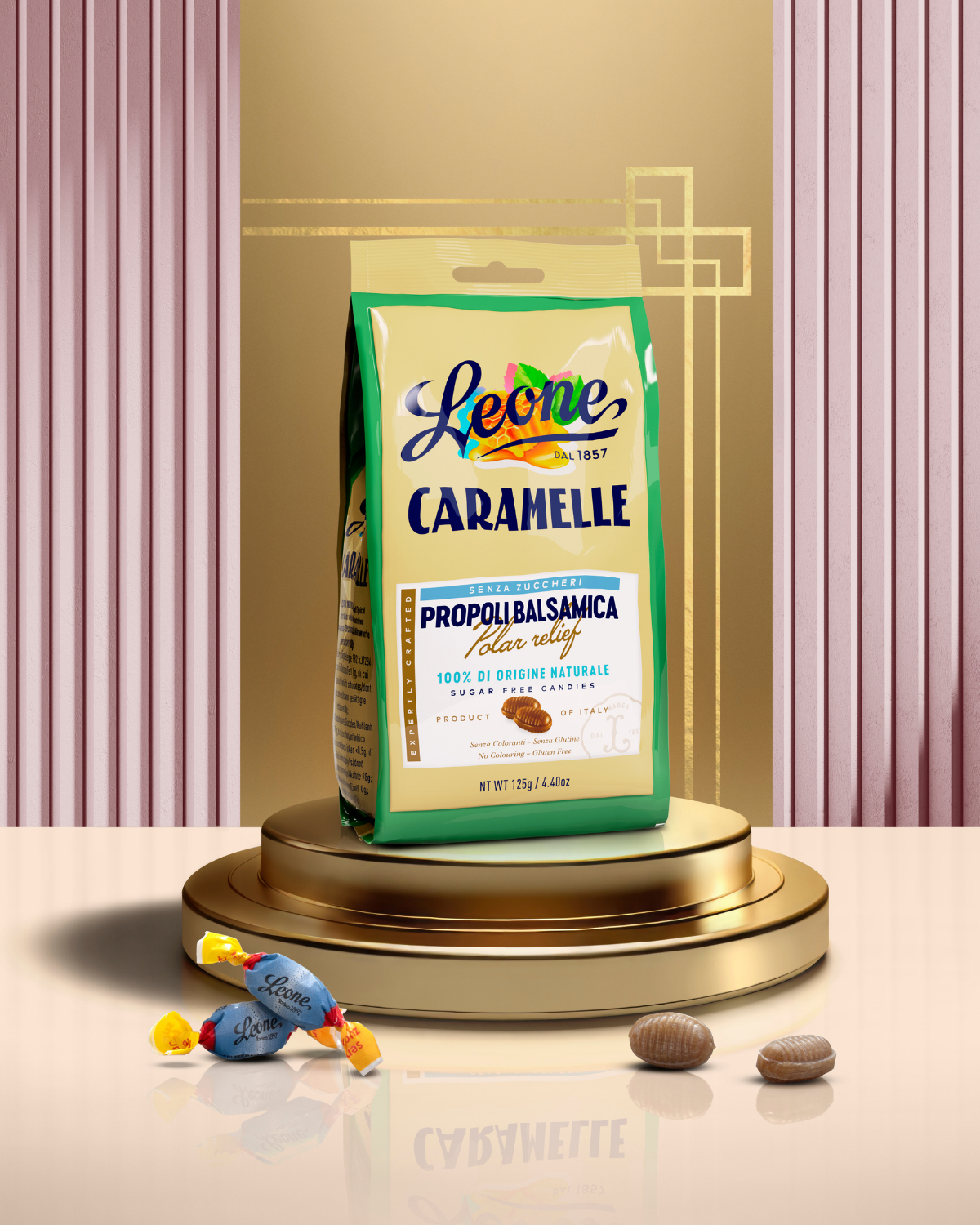 Hervorragende Köstlichkeiten mit Balsamico-Propolis-Geschmack. Kein Zucker, 100 % Leone.