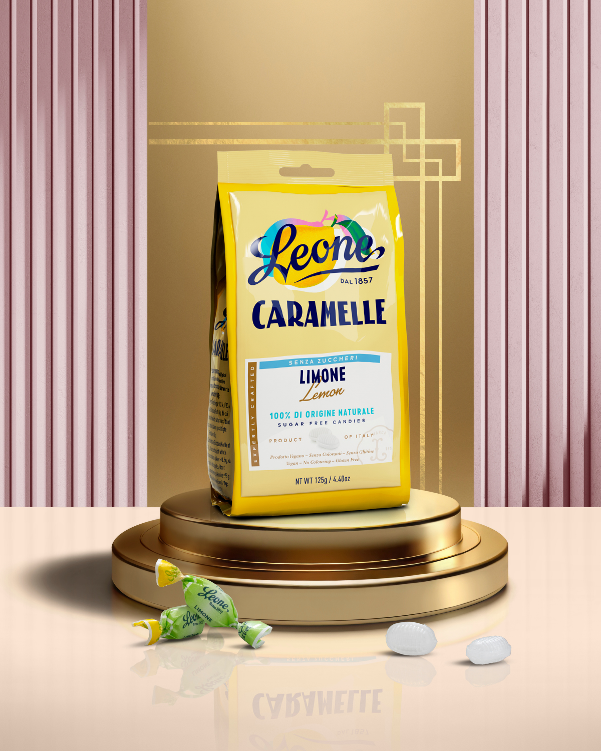 Hervorragende Köstlichkeiten mit Zitronengeschmack. Kein Zucker, 100 % Leone.